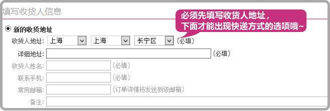 必须先选择好收货人地址,才会出现快递方式的选项哦