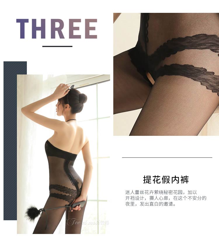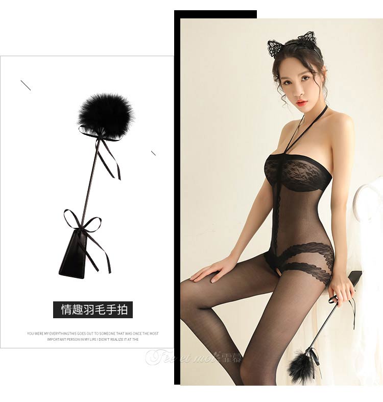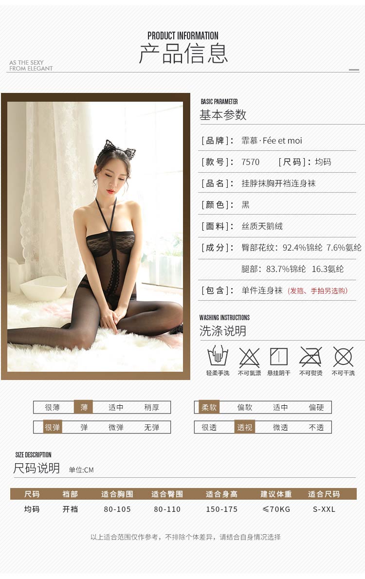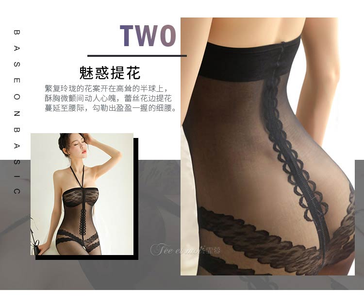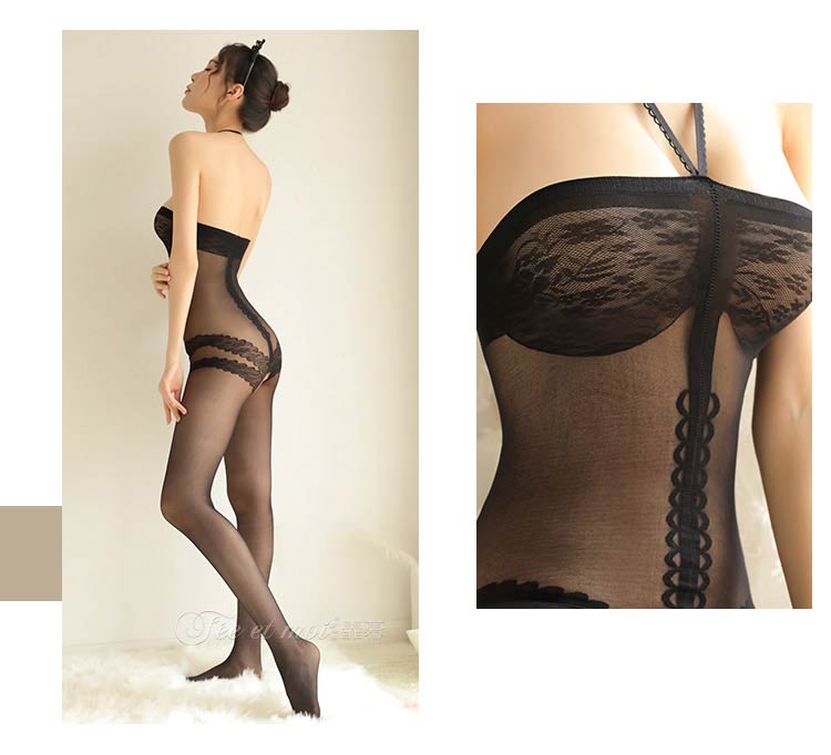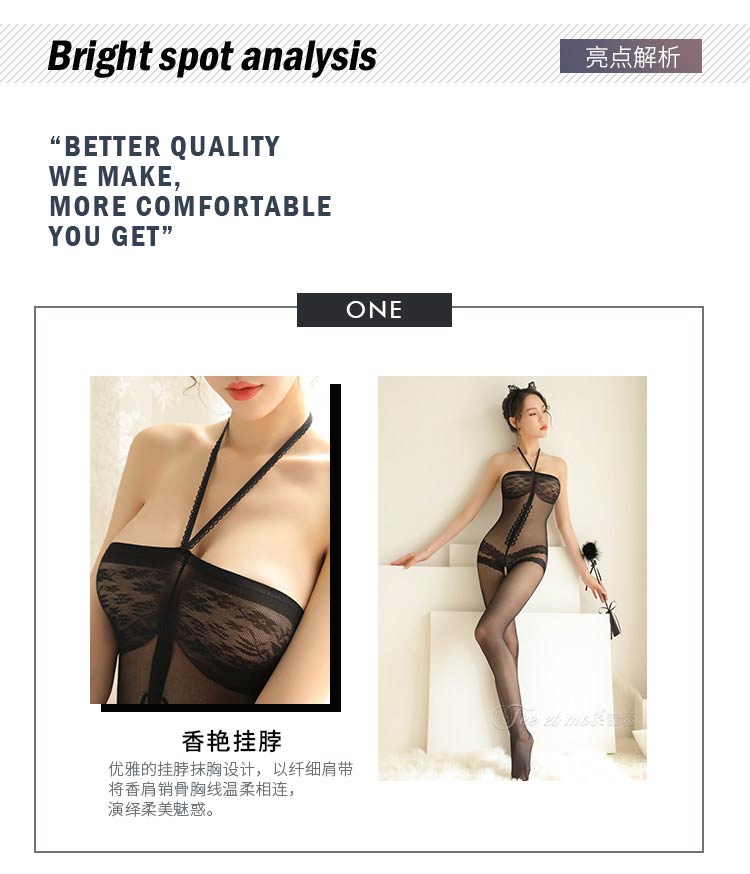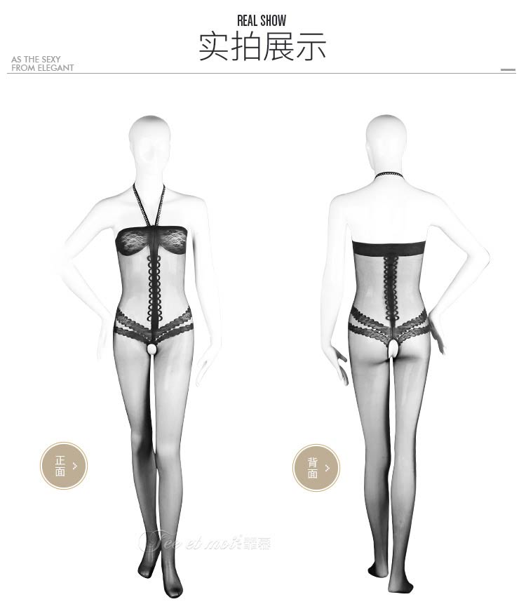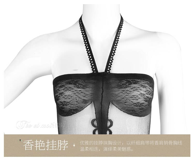 品名:霏慕复古挂脖抹胸开档连身袜网衣7570