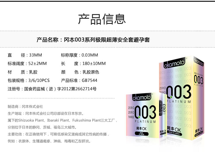 品名:日本冈本003白金极薄安全套10只装
