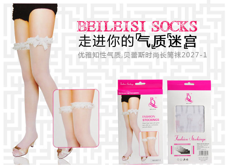 品名:蓓蕾斯白色蕾丝边丝袜2027-1