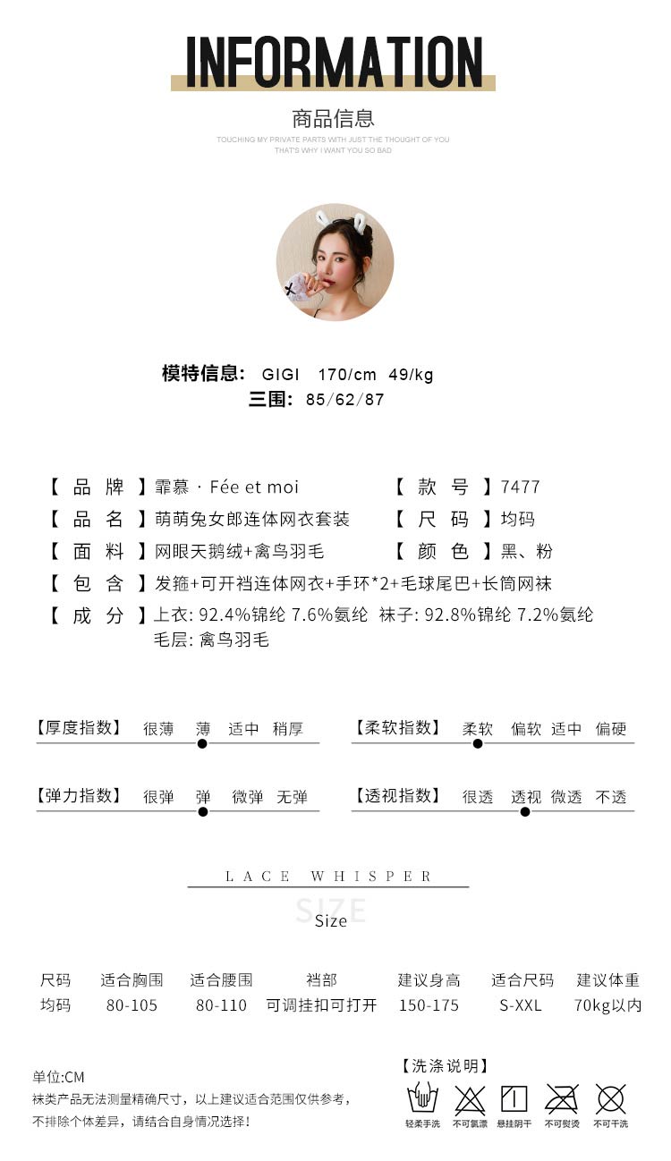 品名:霏慕 萌萌兔女郎连体网衣套装7477