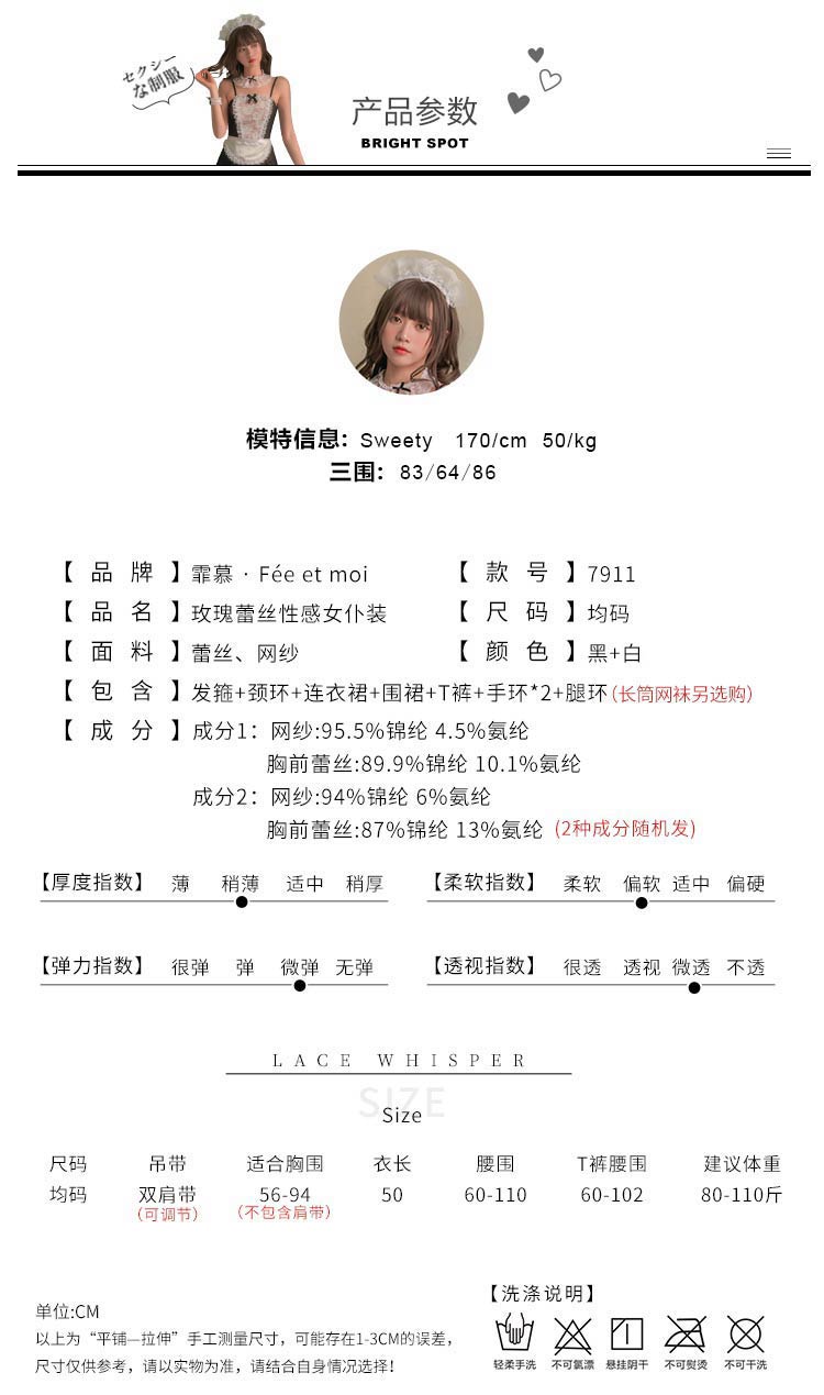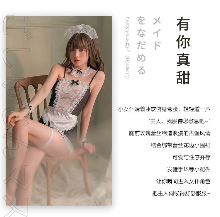 品名:霏慕玫瑰蕾丝性感女仆装7911