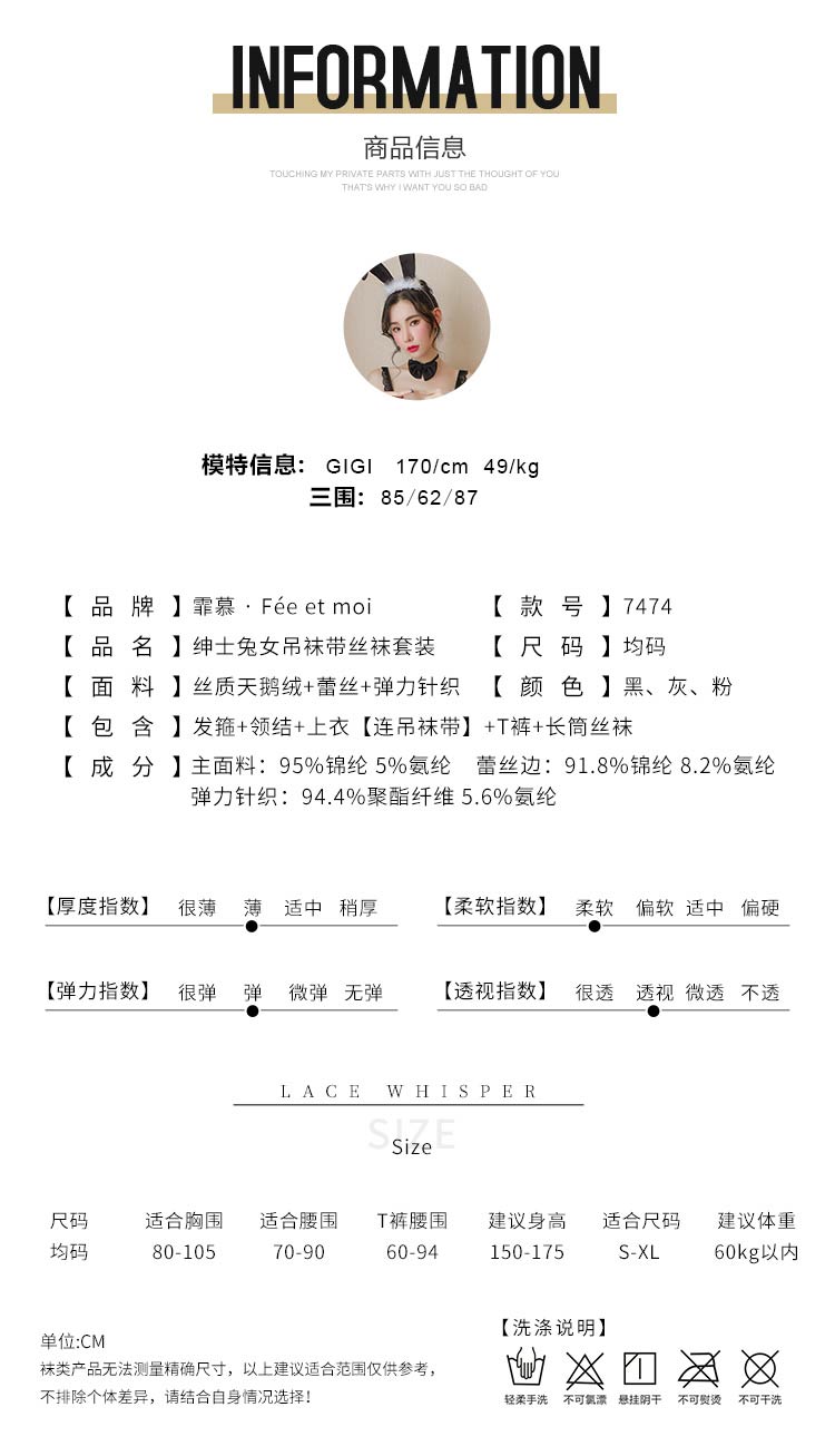 品名:霏慕绅士兔女吊袜带丝袜套装7474