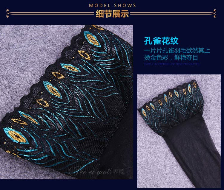 品名:霏慕12D孔雀花边长筒袜7224