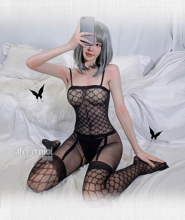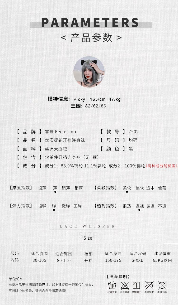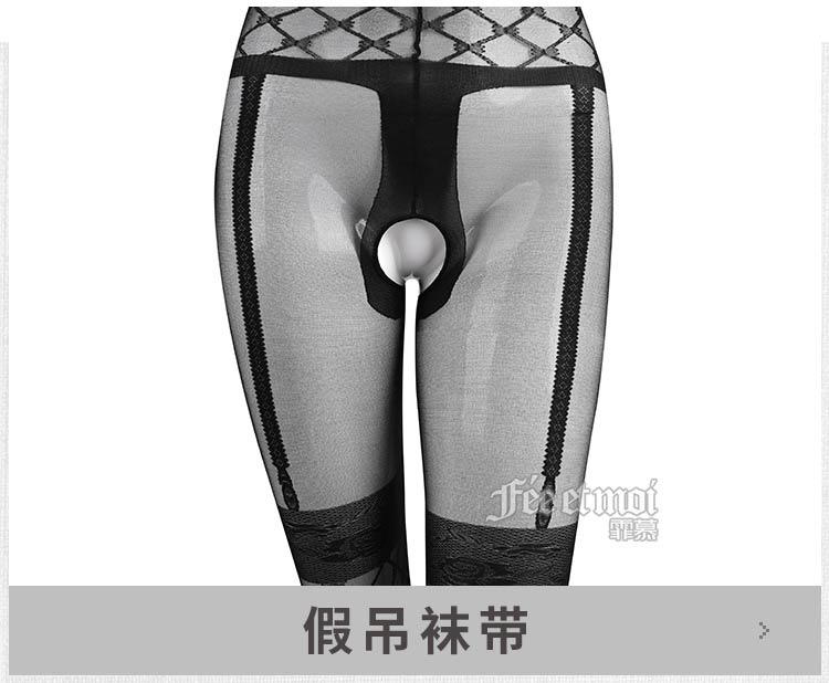 品名:霏慕丝质提花开裆连身袜7502