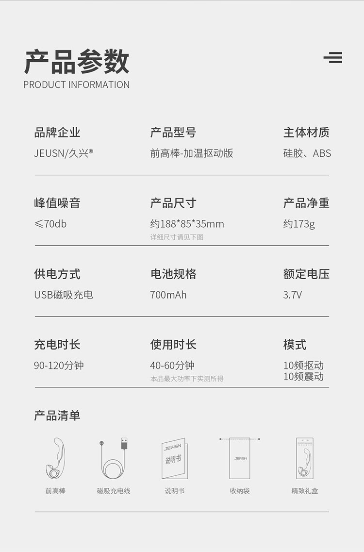 品名:JEUSN久兴前高棒加温抠动版 前列腺按摩器
