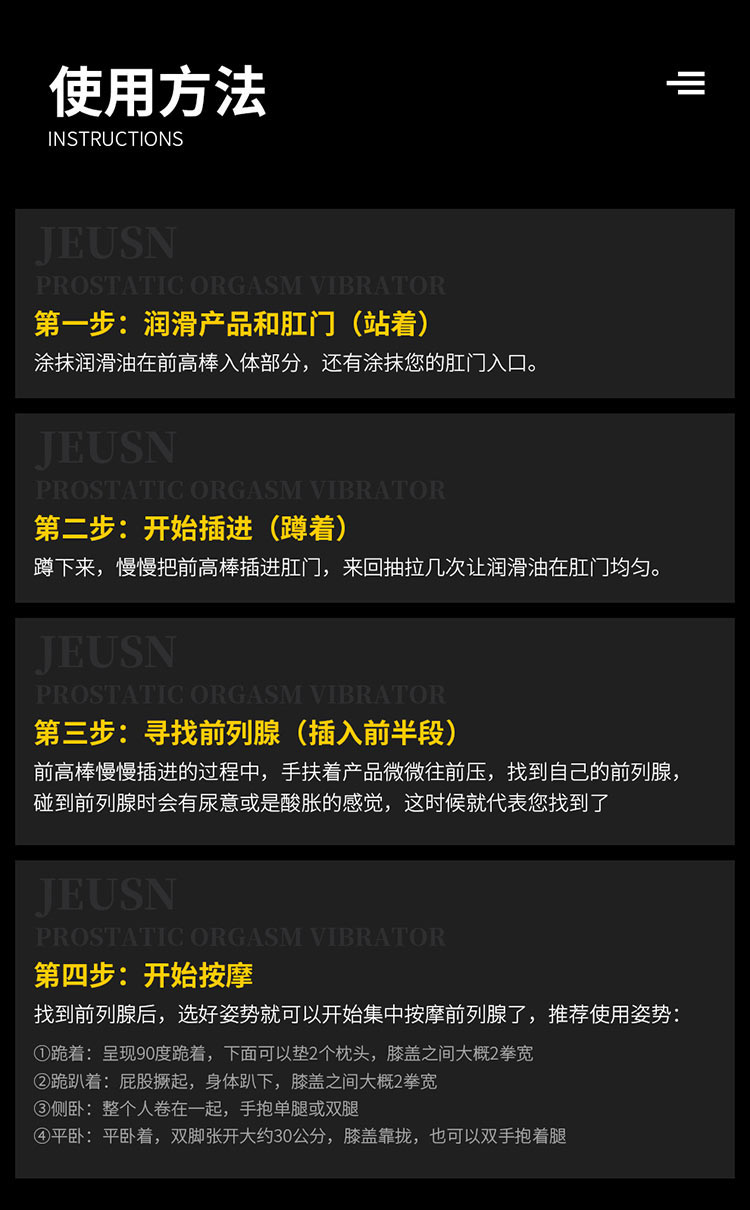 我看了很久了,很喜欢这个按摩器,收到使用很多次了,按摩到前列腺的很舒服,振动档位很多,每个频率都是很爽的.