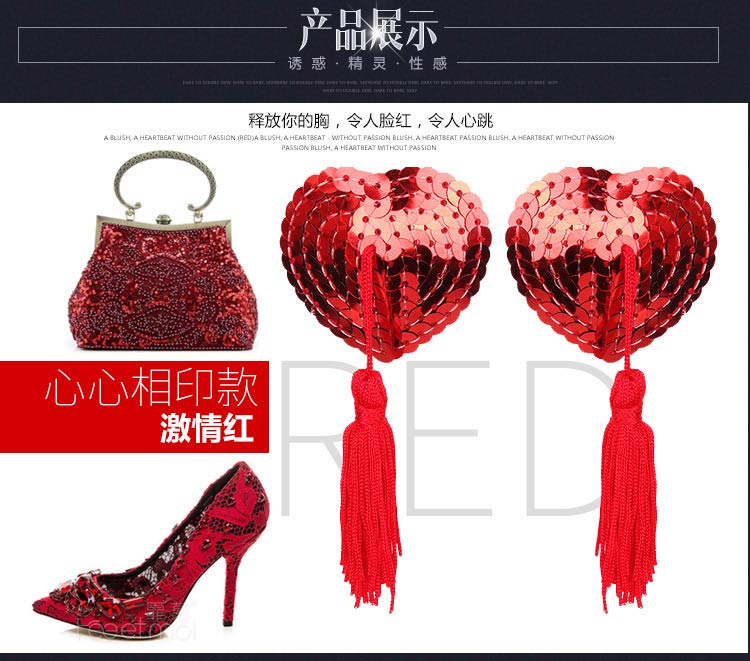 流苏心形亮片乳贴