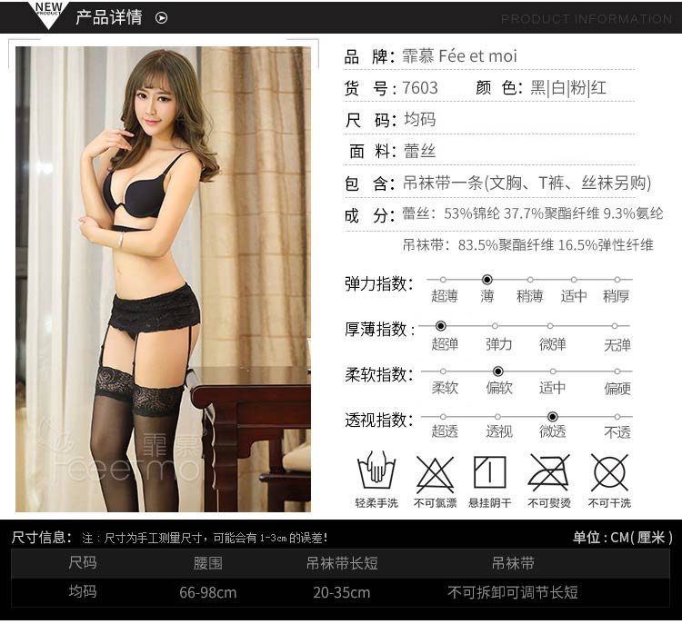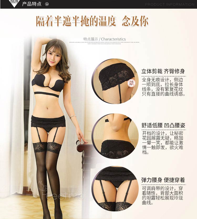 霏慕配件双层蕾丝花边吊袜带+丝袜7603