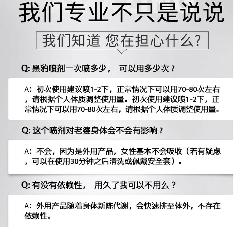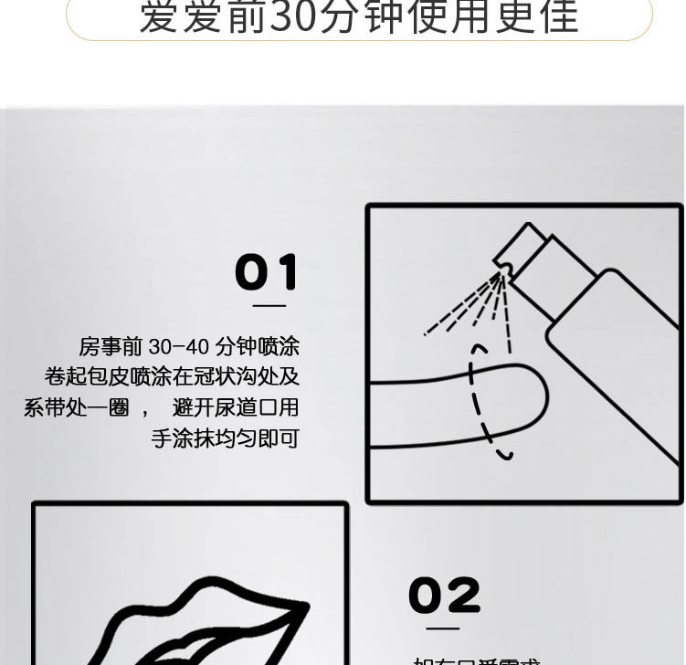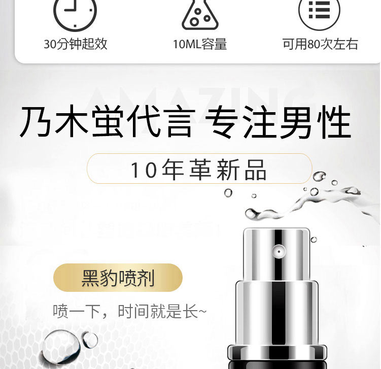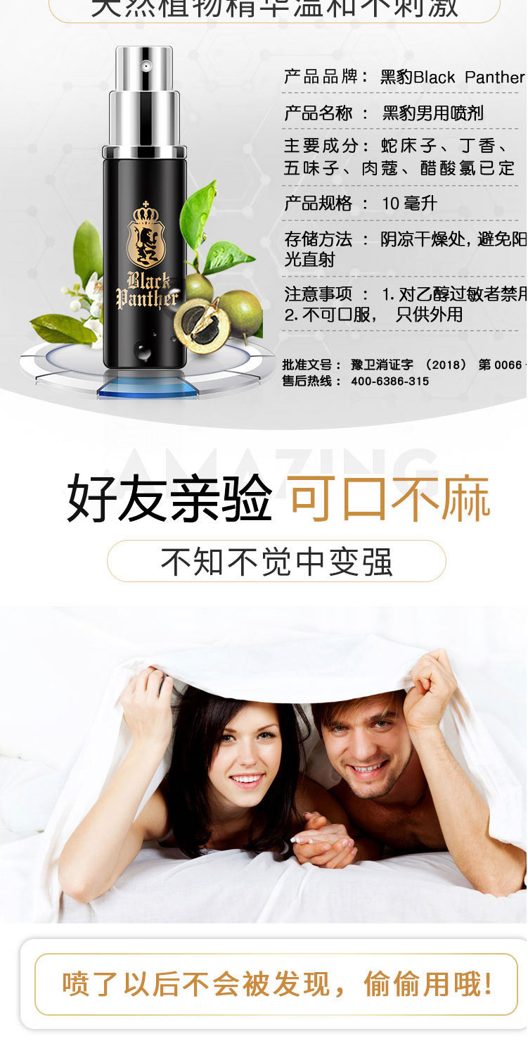 在爱爱前半个钟喷了两下,用起来杠杠的,平时就是十多分钟,现在每次都可以大战30多分钟左右,射精时间也可以自己控制的,每次做的媳妇都是挺爽的,觉得自己比之前有魅力多了,太给力了!