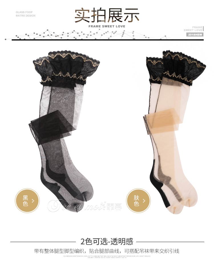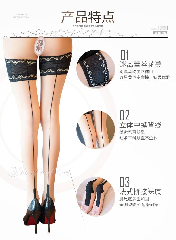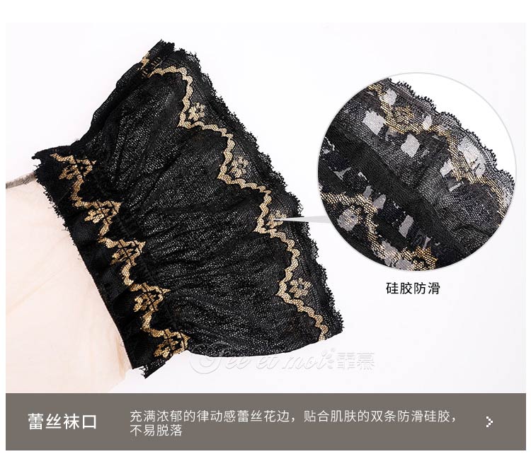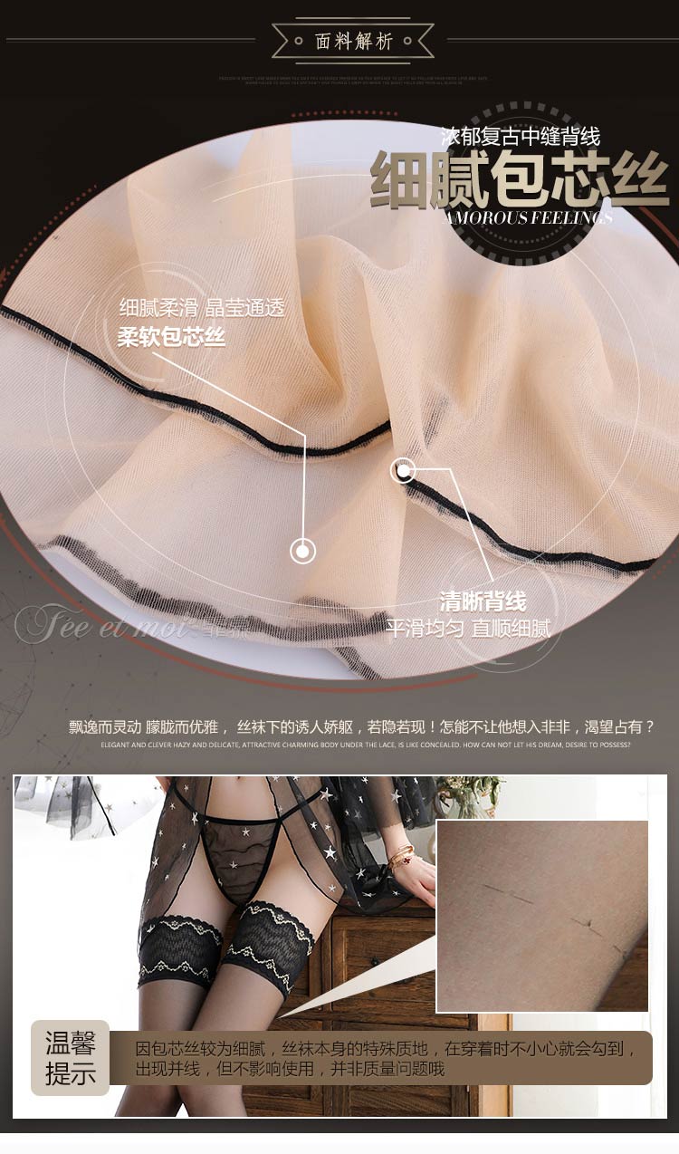 霏慕10D复古蕾丝后线长筒袜7243
