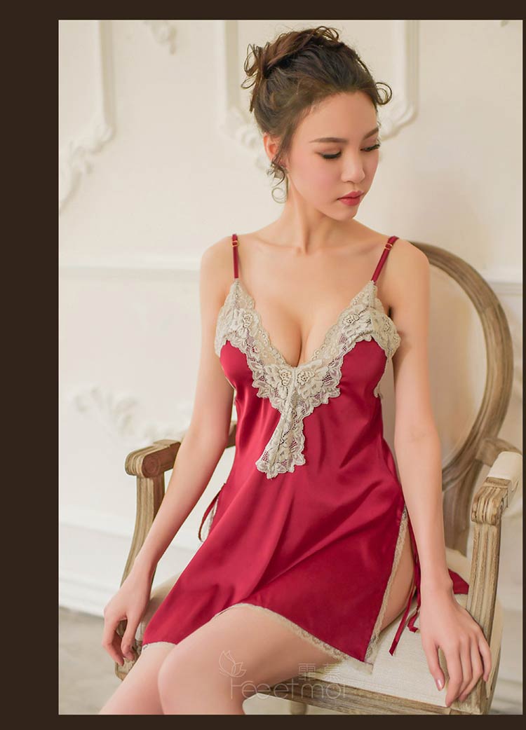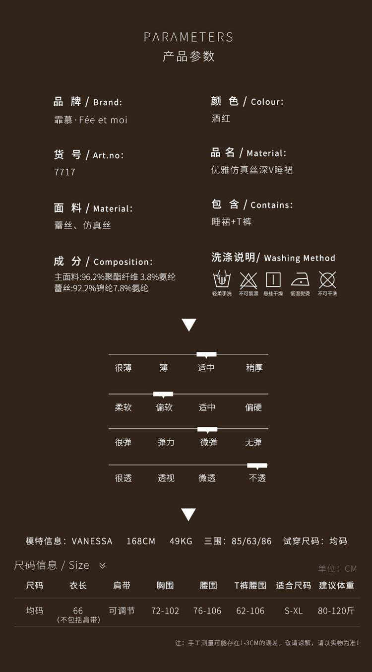 霏慕优雅仿真丝深V睡裙7717