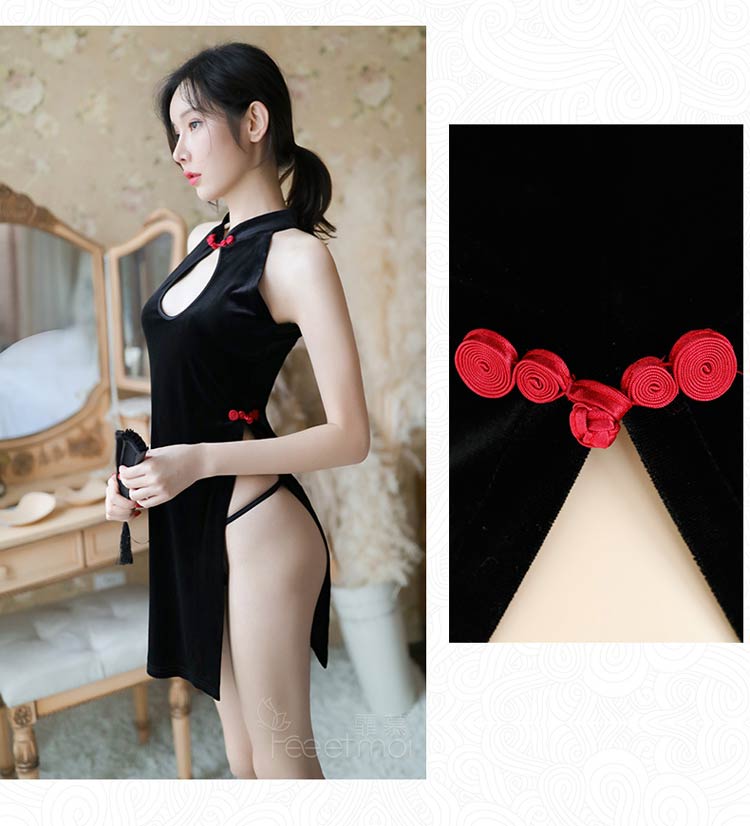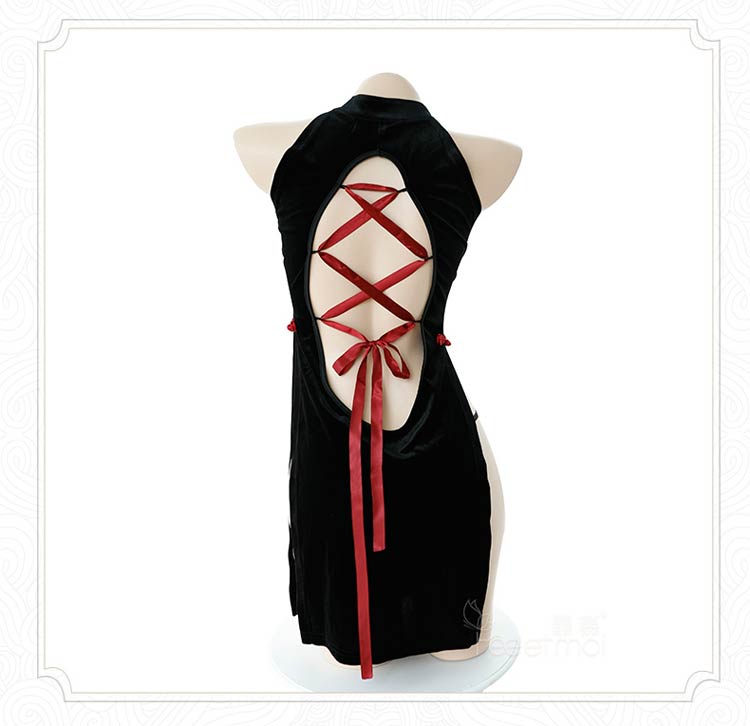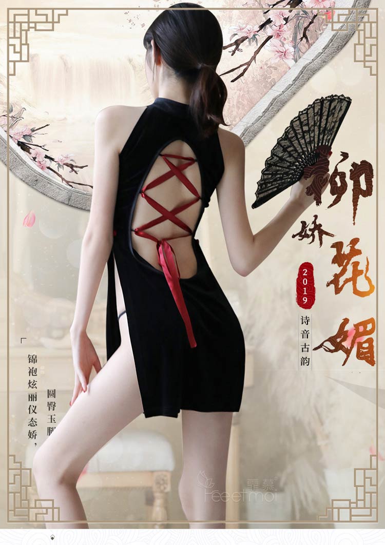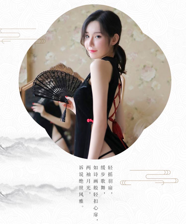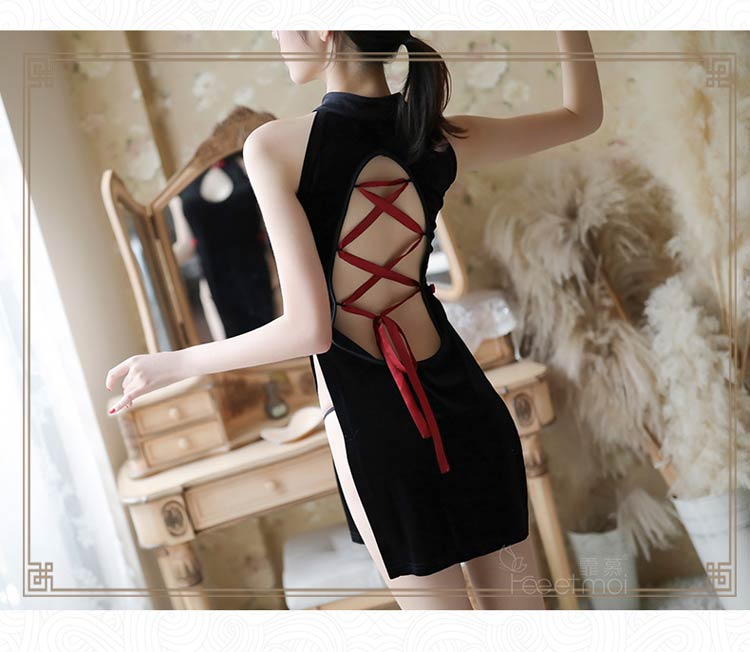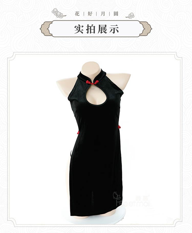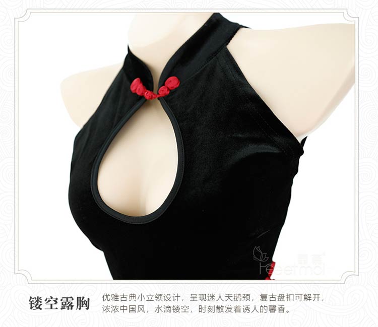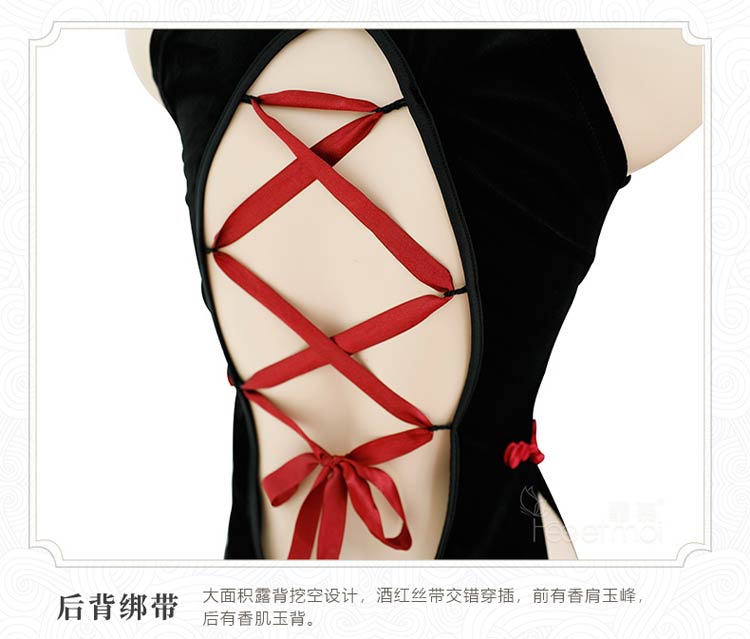 霏慕蕾丝珠光挂脖露乳包臀睡裙网衣7979