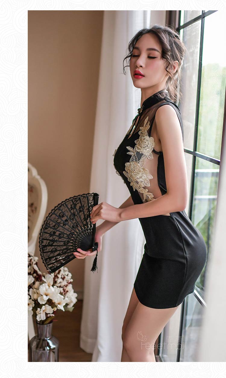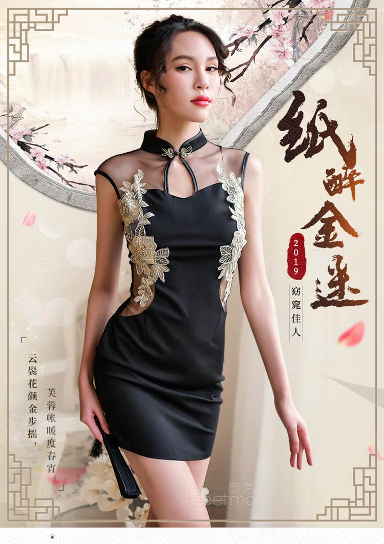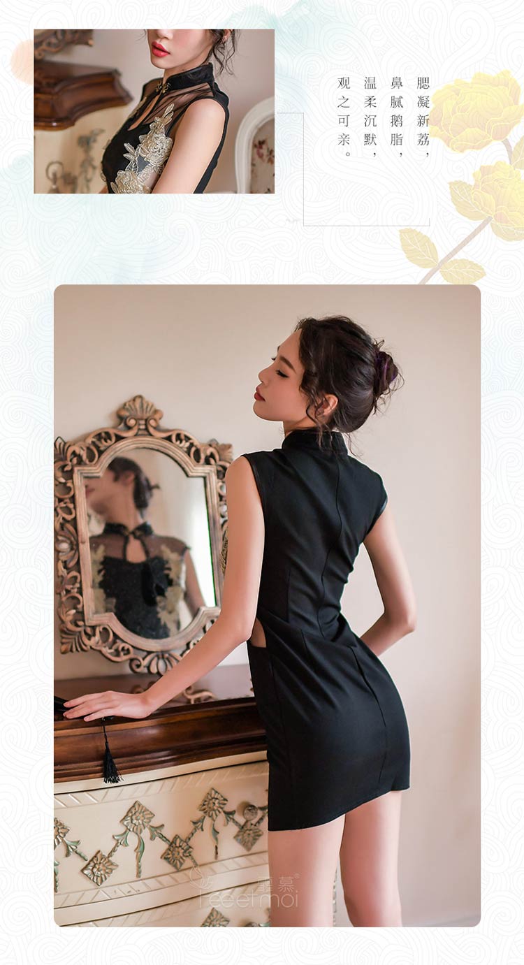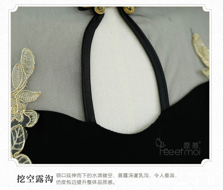 霏慕蕾丝珠光挂脖露乳包臀睡裙网衣7979