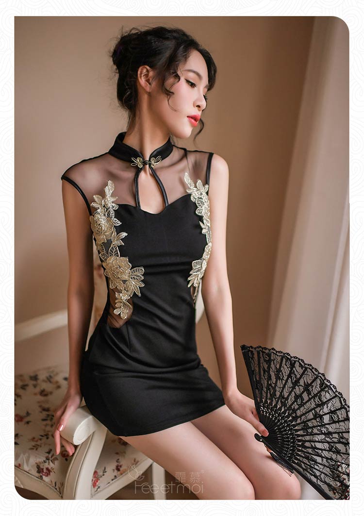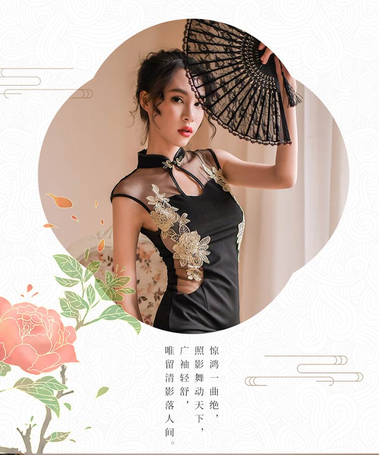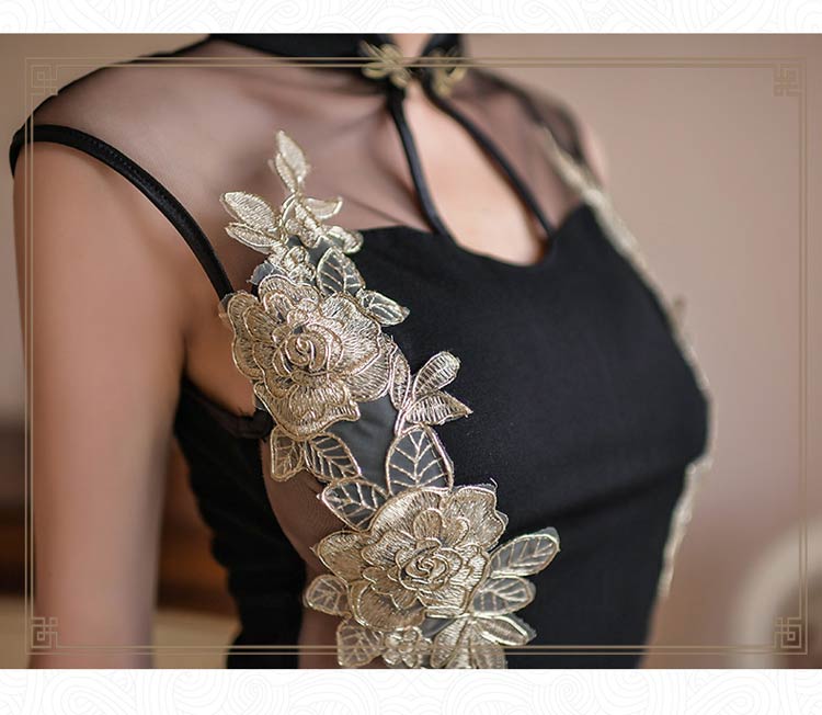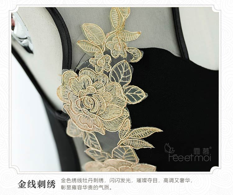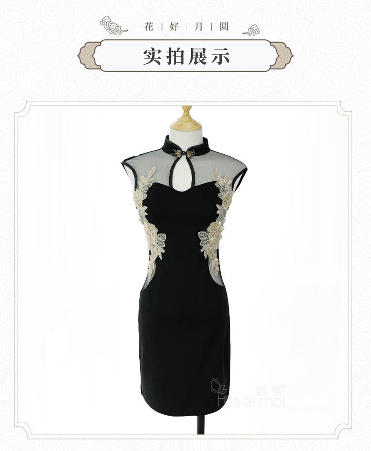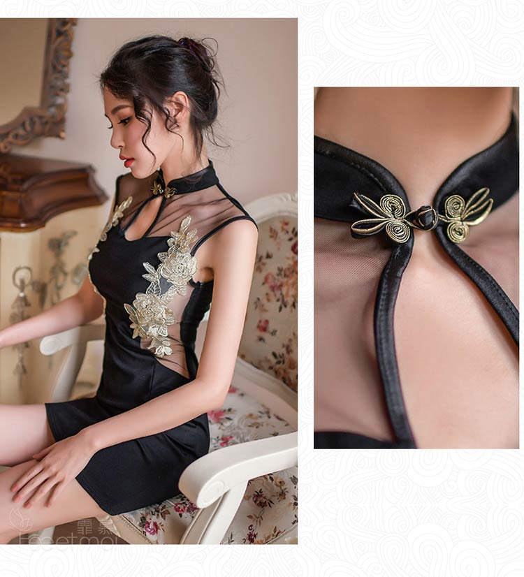 霏慕蕾丝珠光挂脖露乳包臀睡裙网衣7979