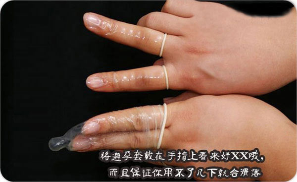 3.将抠抠套套在使用的手指上,如有两只以上的手指要使用,请务必佩戴每一只手指,以维护情结卫生;