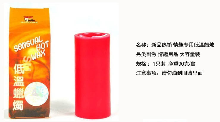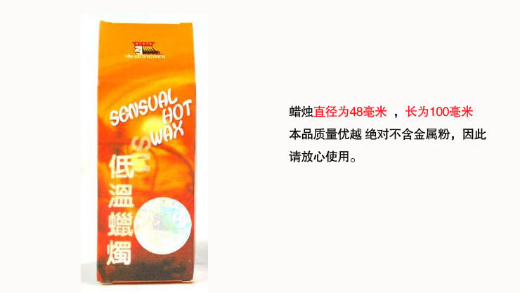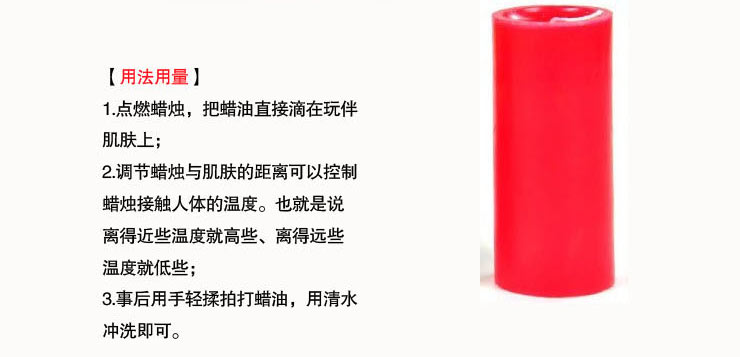 [产品介绍]帝臣SM专业低温蜡烛采用优质医用美容蜡精制而成,对人体无害。蜡烛燃烧温度为48-50度,绝对不会灼伤皮肤。调节蜡烛与肌肤的距离可以控制蜡烛接触人体的温度。也就是说离得近些温度就高些、离得远些温度就低些。帝臣蜡烛添加天然香料,味道芳香。